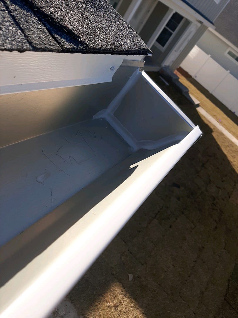This new construction home was upgraded with the installation of a pretty new set of white K-Style 6 inch seamless aluminum gutters!