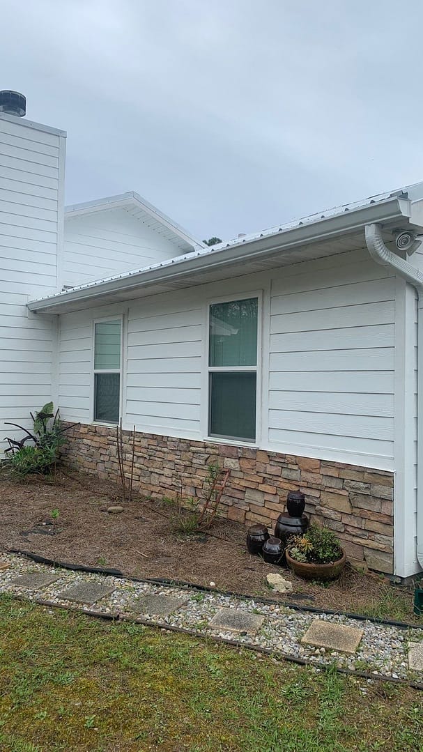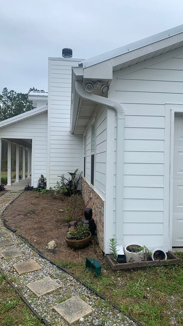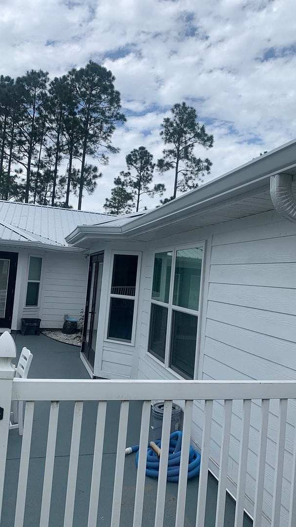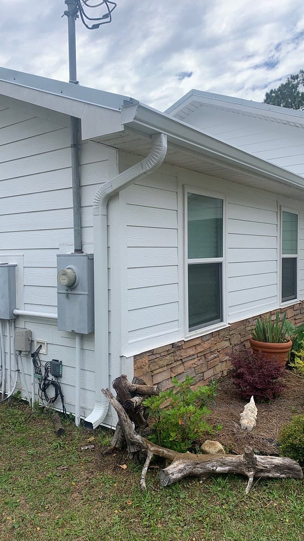This home in the Panama City Beach area was upgraded with the installation of beautiful white K-Style seamless gutters and splash guards!