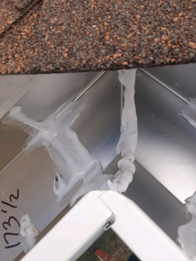 The metal pieces you see attached to the corners, or bends of the gutters are called splash guards. Having splash guards as part of your gutter system is essential in keeping the rain water flowing through your gutter system in those areas that have the potential to overflow during a heavy rainfall. They prevent the water from overflowing onto the ground.