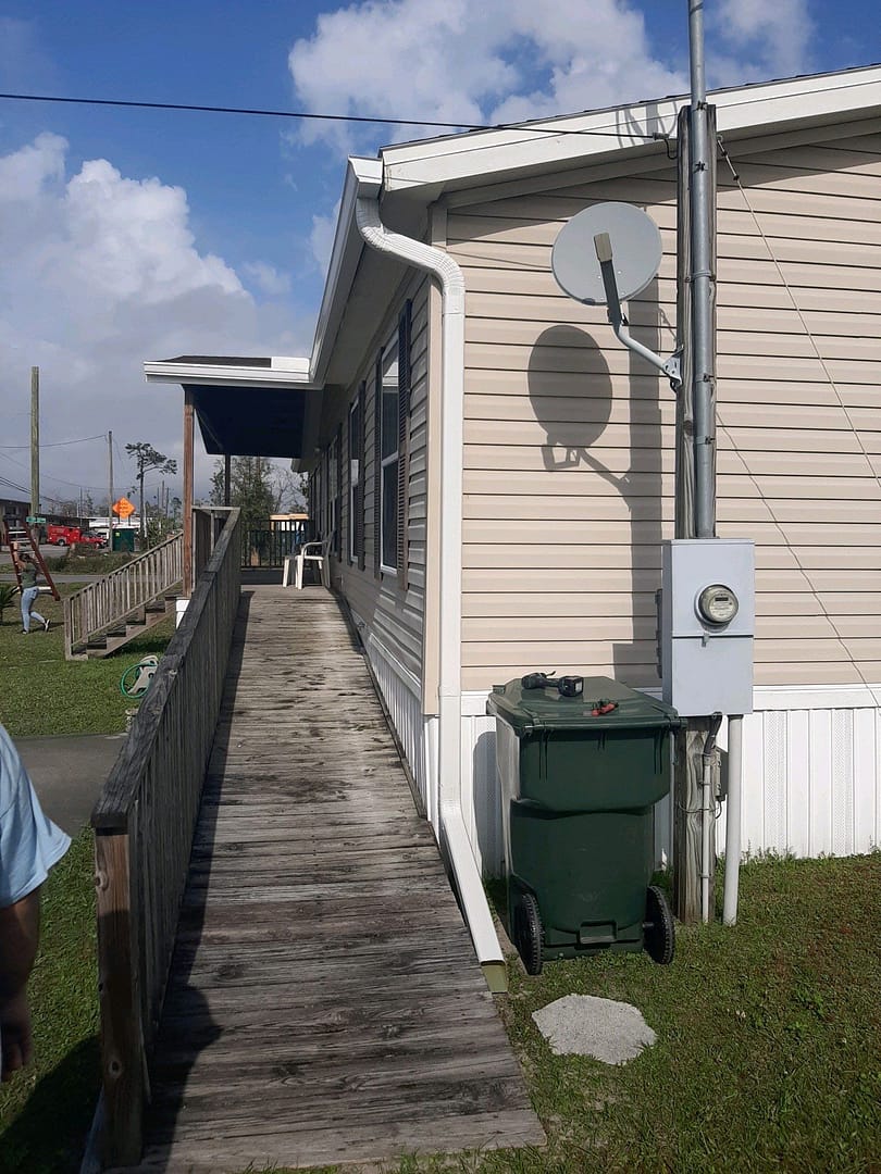 Gutters added to your home are both pretty and functional! When coming and going, this homeowner will no longer have to walk through a curtain of uncontrolled rain water, running off the roof, cascading down upon the stairs and ramp! This will help greatly on those heavy rain days we so often see here in Florida!