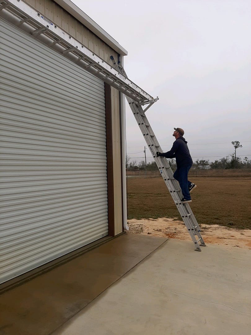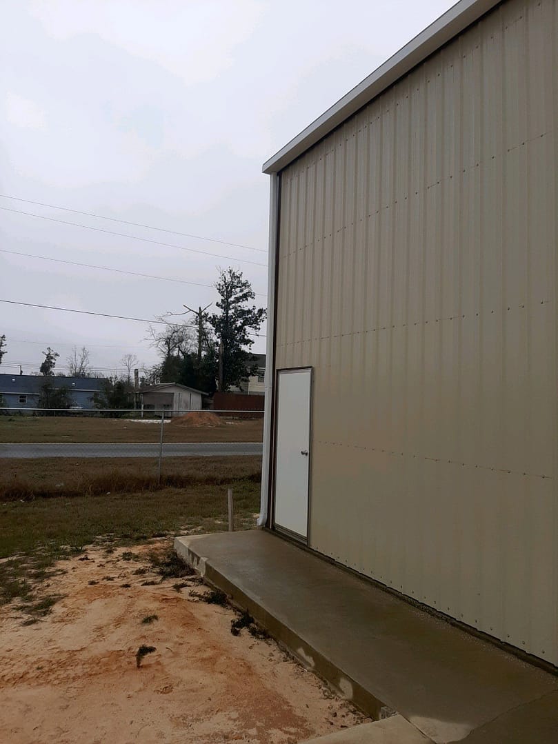 This large sized garage located in Panama City was upgraded with a set of white K-Style half round seamless gutters!