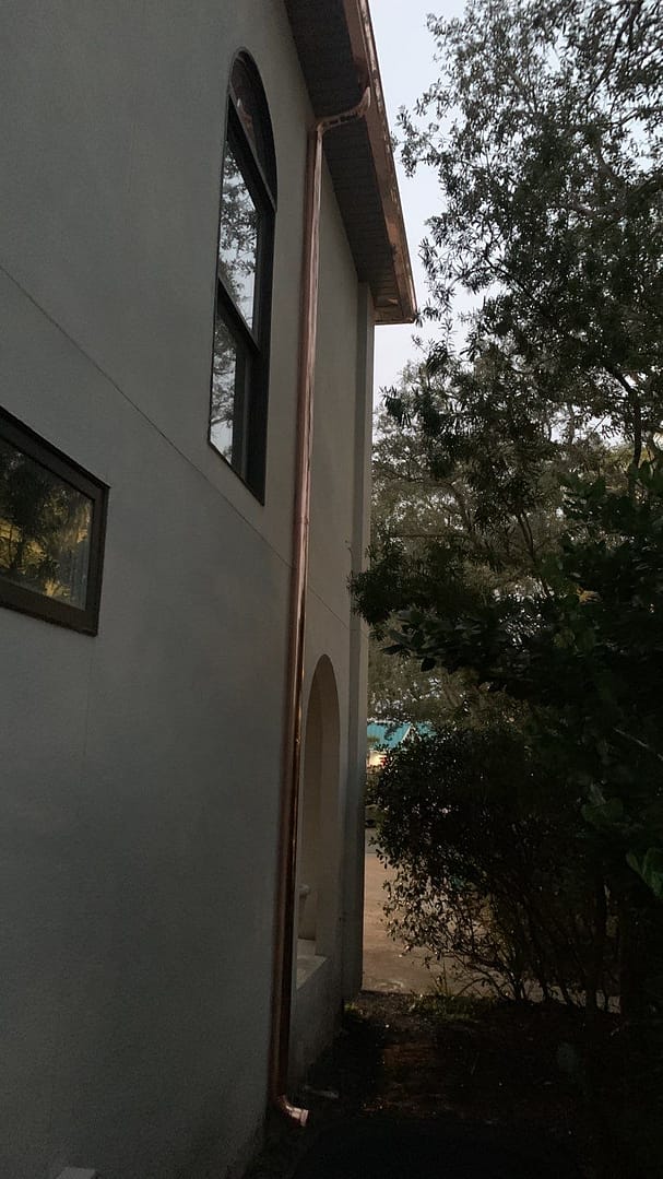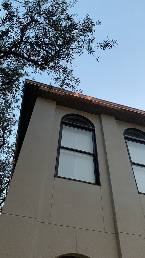 This gorgeous beach home located in Destin was upgraded with a fantastic set of copper seamless gutters, complete with gutter guards to perfectly complement its design! The gutter guards will help keep debris from collecting and building up in the gutters.