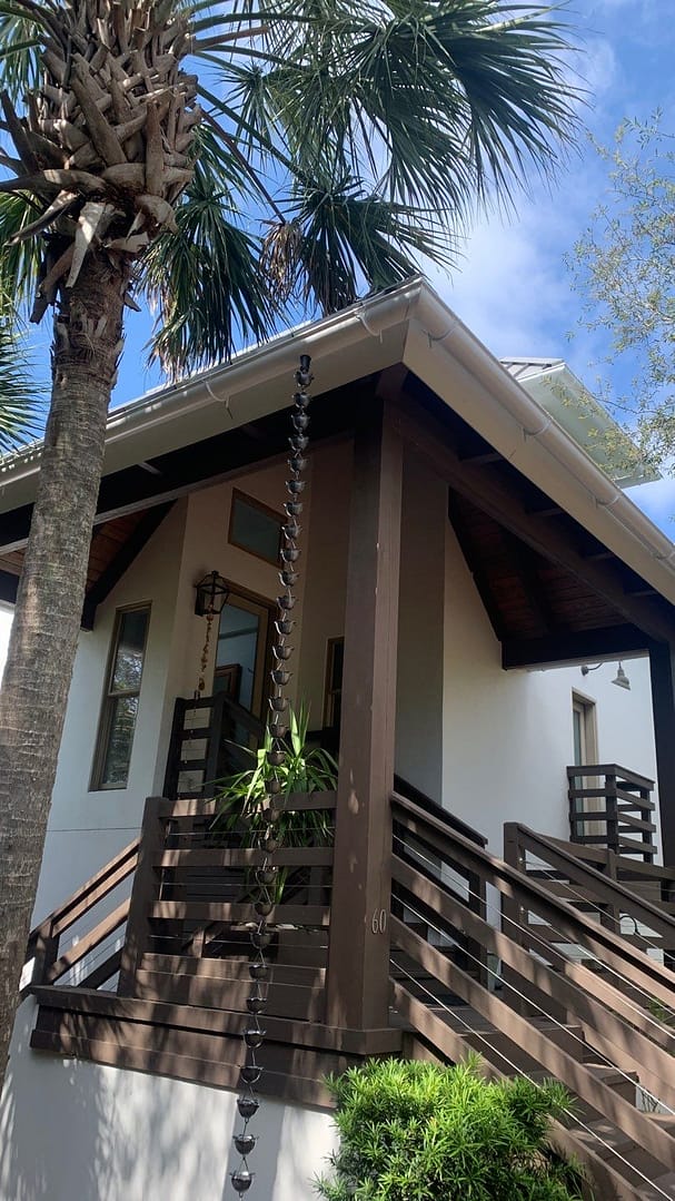 This beautiful beach home located in Santa Rosa Beach was upgraded with a set of Half Round 6-inch Seamless Galvanized Gutters and down spouts to perfectly match its design!