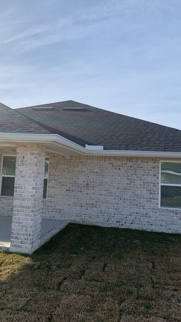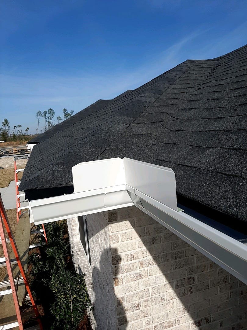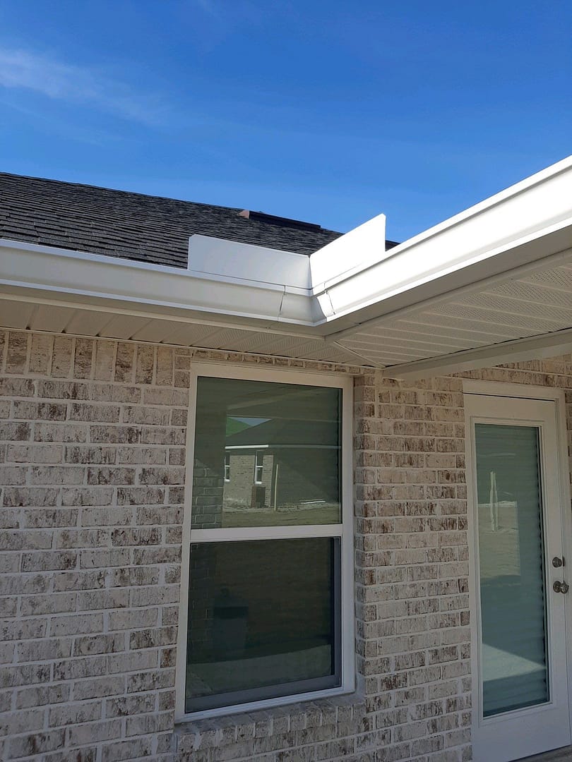 This beautiful brick new construction home was upgraded with a gorgeous set of white K-Style seamless aluminum gutters to perfectly enhance its design!