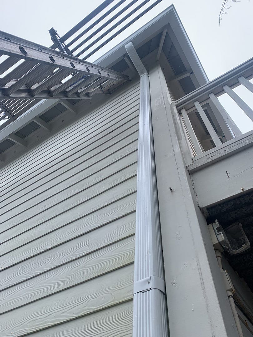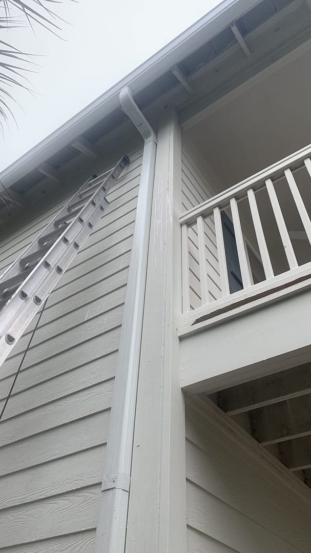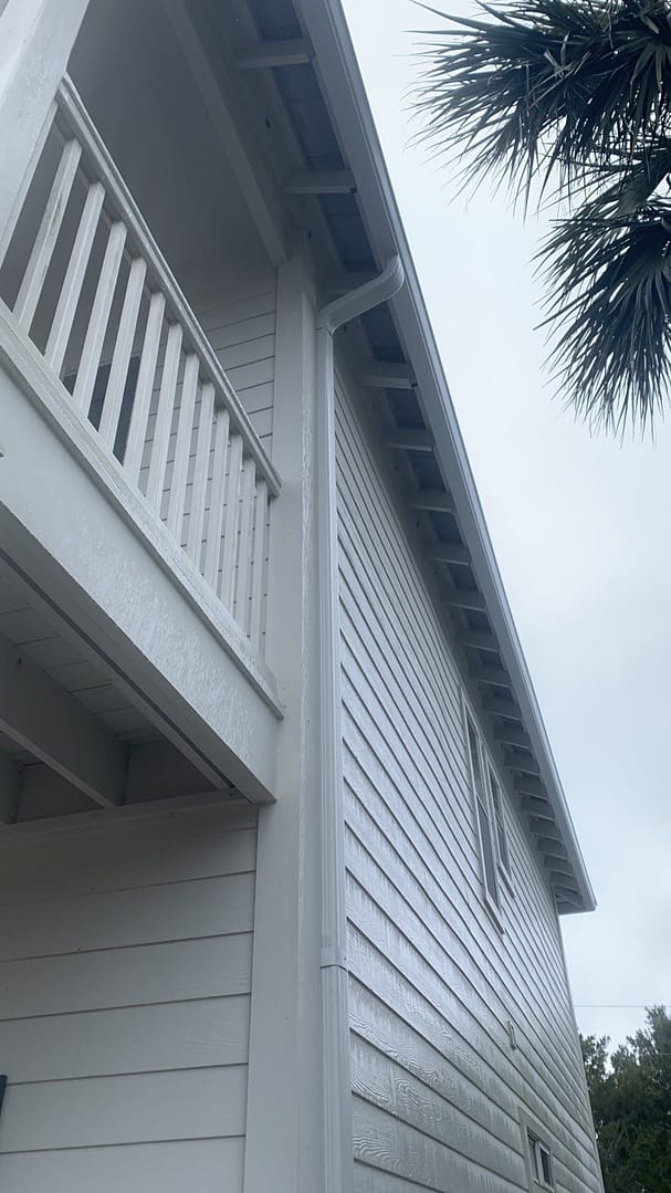 This multi-story beach home was upgraded with a nice set of white 6 inch K-Style seamless aluminum gutters!
