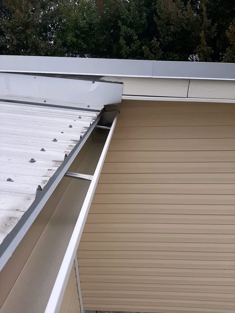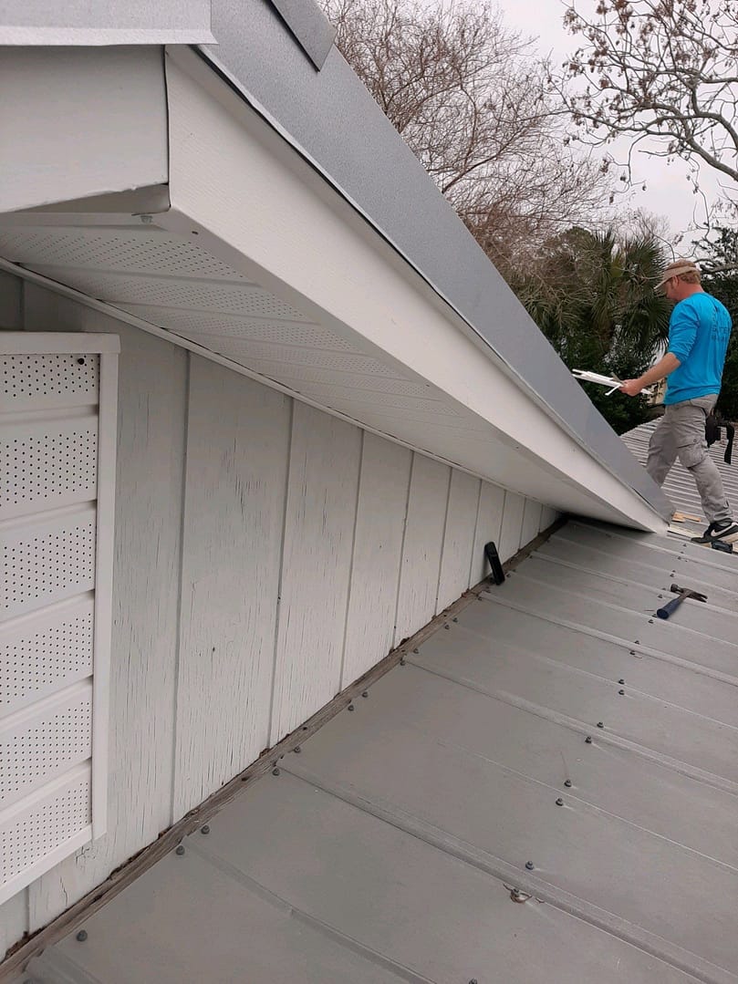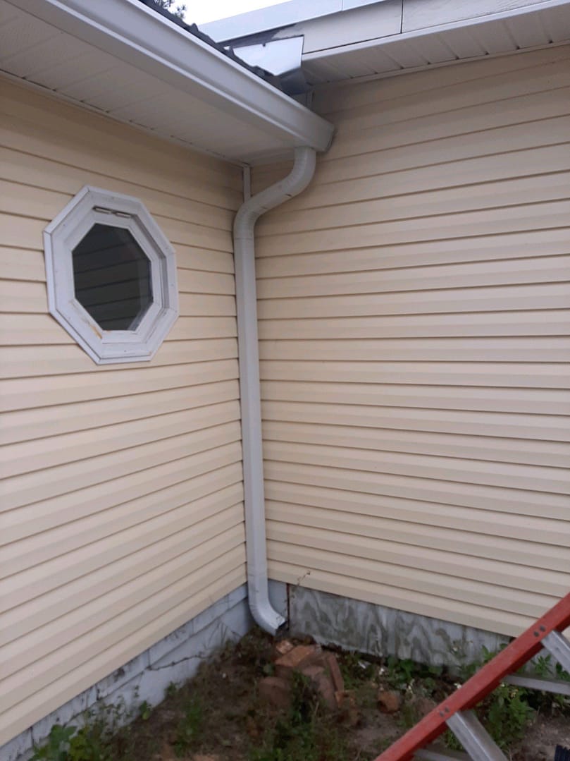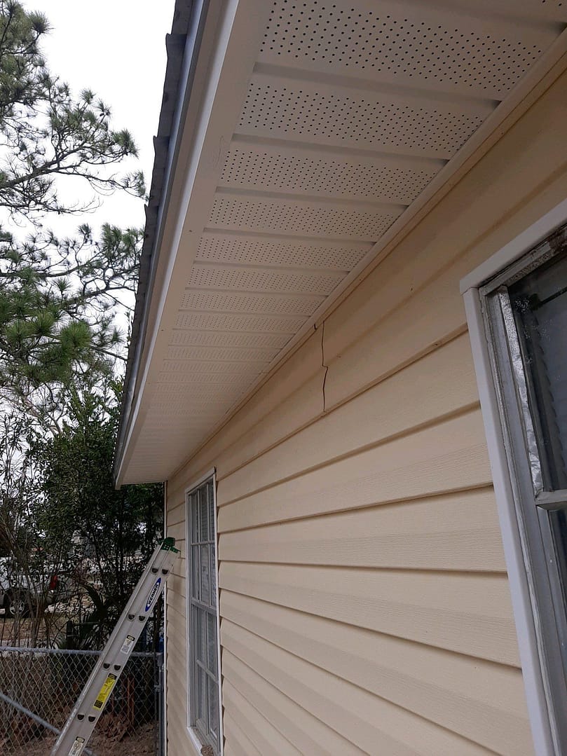 This nifty beach home had an all around amazing upgrade with brand new white vinyl soffits, white metal fascia, and white 6-Inch seamless gutters to perfectly match its trim!